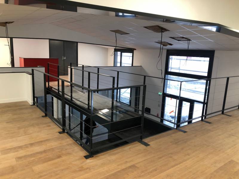 mise en place de garde corps périphérique en câble inox identique à l'escalier