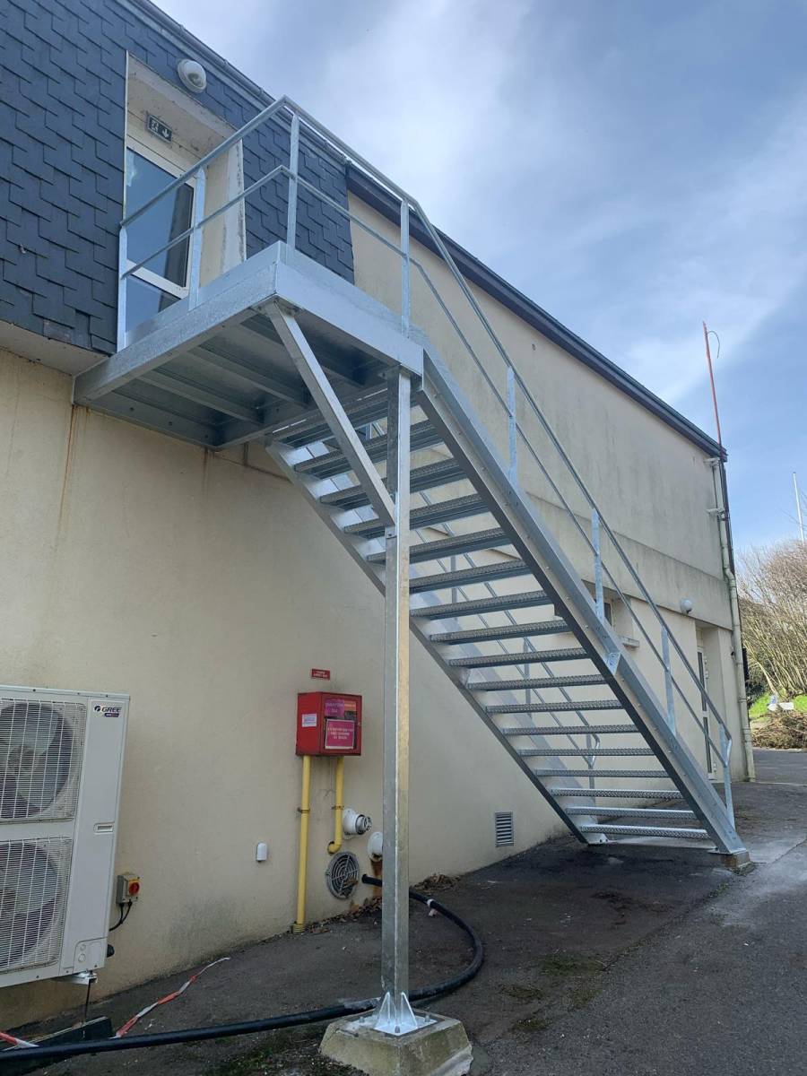 La société SM Bâtiment est intervenue dans cet EHPAD, proche de ETRETAT (76). Nous avons réalisé dans nos ateliers la structure métallique de l'escalier, installé, par la suite chez notre client par nos équipes de poseurs, après dépose de l'escalier existant. Escalier métallique avec finition galvanisée, marches en tôles larmées et garde-corps au code du travail.