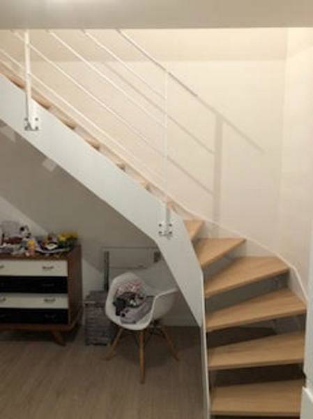 les marches sont en hêtre ep 40 mm avec vitrification incolore trafic intense possibilité d'avoir d'autres essences ou matières