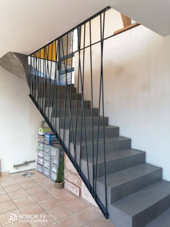 La société SM Bâtiment est intervenue chez ce client, proche de LE HAVRE (76600). Nous avons réalisé dans nos ateliers ce garde-corps rampant pour escalier en fers rond finition galvanisée, installé, par la suite chez notre client par nos équipes de poseurs.