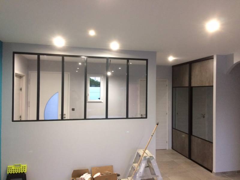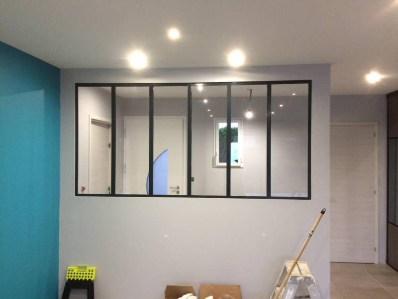 Réalisation d'une verrière fixe style atelier, composée d'un cadre en profilés acier, 6 vitrages.