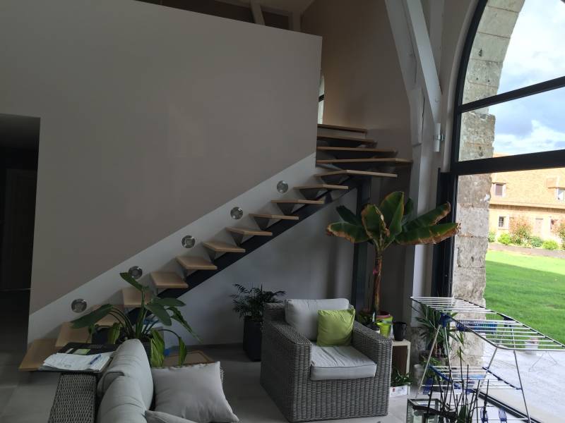 le but du verre étant de prolonger la lumière qui entre par la verrière en toiture