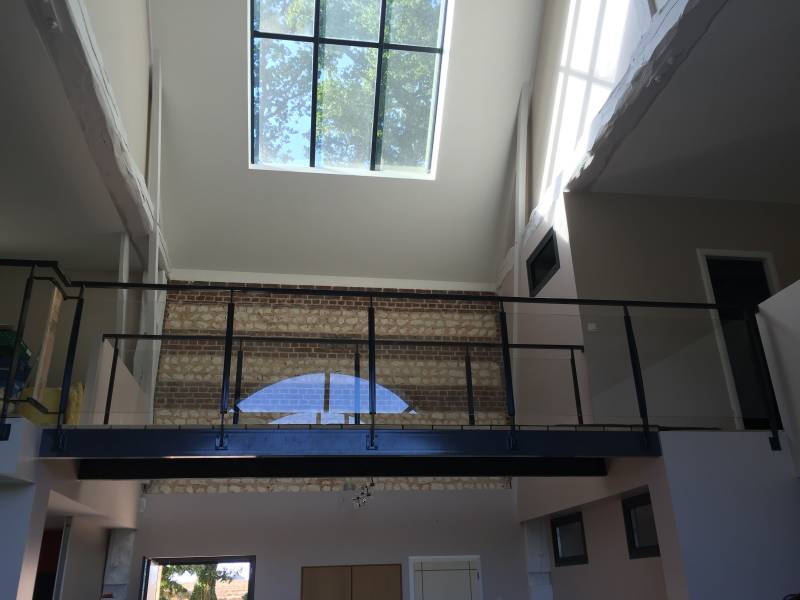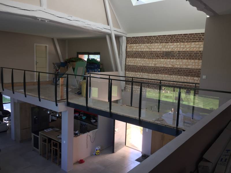 réalisation de garde corps vitré sur une mezzanine proche d'yvetot